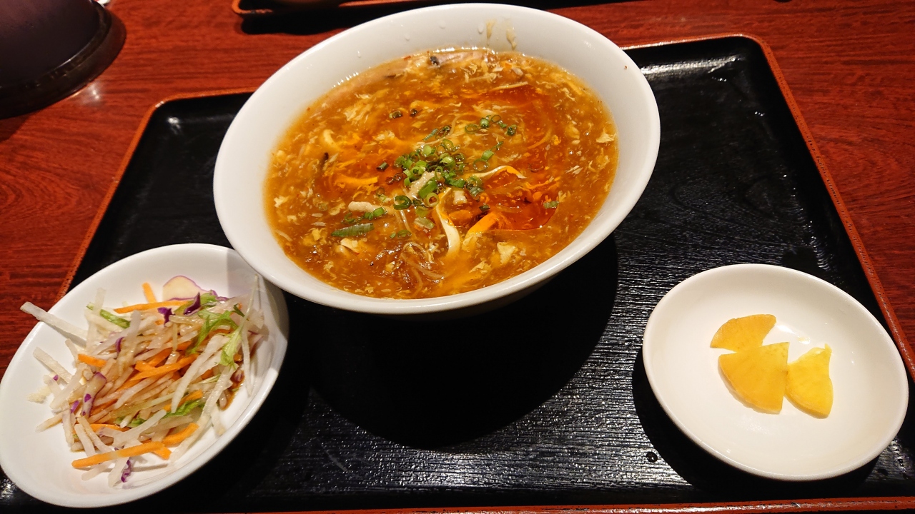 ランチのスーラー湯麵をオーダー。麺を持ち上げるとほぼ一玉全部持ち上がりちょっと笑ってしまった。