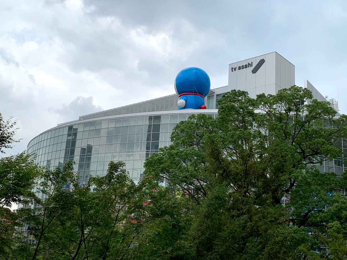 六本木ヒルズにあるテレビ朝日では、今年も「テレ朝夏祭り」が開催中で、午前中から大勢の家族連れでにぎわっています。屋上には大きなドラえもんの姿も見えます。アトラクションのひとつ「ドラえもん びっくり!?巨大(きょだい)バルーン」のようです。見つけた子供たちが指さす姿が印象的でした。