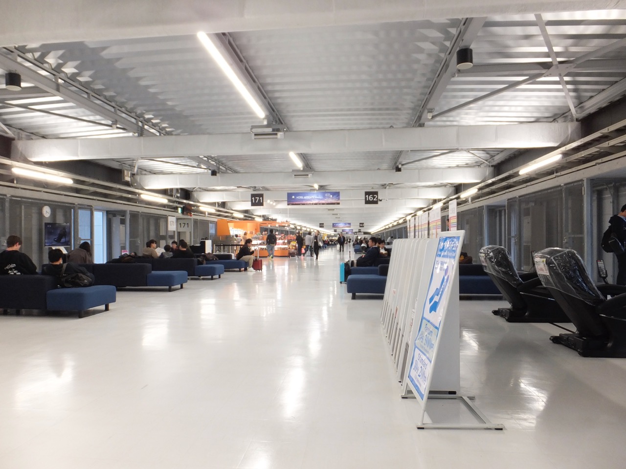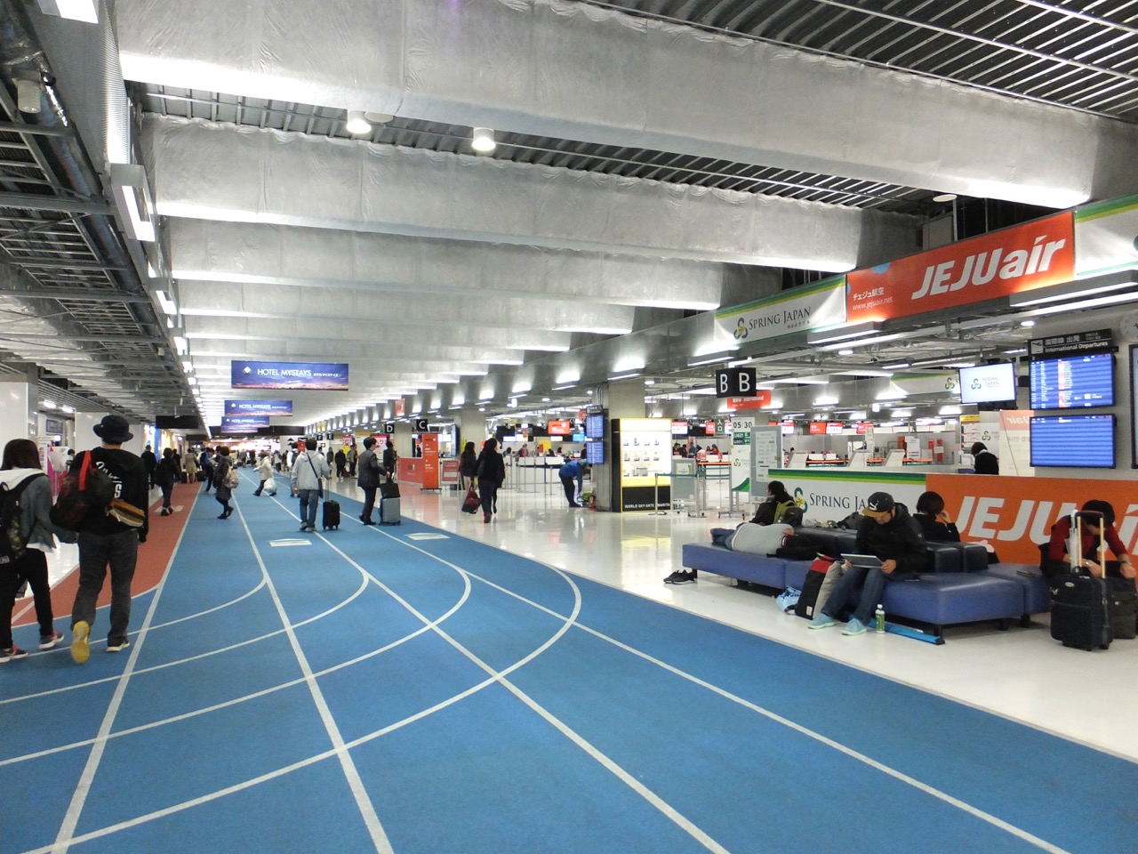 床面に描かれた陸上のトラックのような印刷が楽しいです。どこに向かうかいい案内標識です。