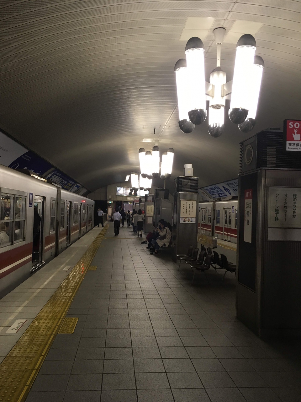 大阪の主要幹線の御堂筋線。大阪はJRよりもこの御堂筋線が一番使われている路線です。新大阪からなんばまでの主要駅をすべてつないでいますから。また、混雑はしますが本数は多いので次来た電車は空いているなんてことも。JR大阪駅から御堂筋線に載る場合は御堂筋口に行くと非常に簡単に乗り換えができますが、他の出口からはかなり苦労します。