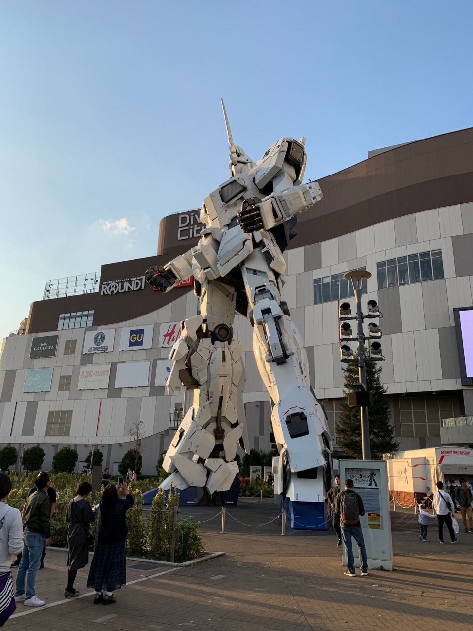 お台場海浜公園駅から少し歩くと見えてきます。大きなガンダム像が目印です。ガンダムの写真を撮っている人が多いです。中に入るとラウンドワンや様々なショップがあり、若者やファミリー向けのスポットという印象です。