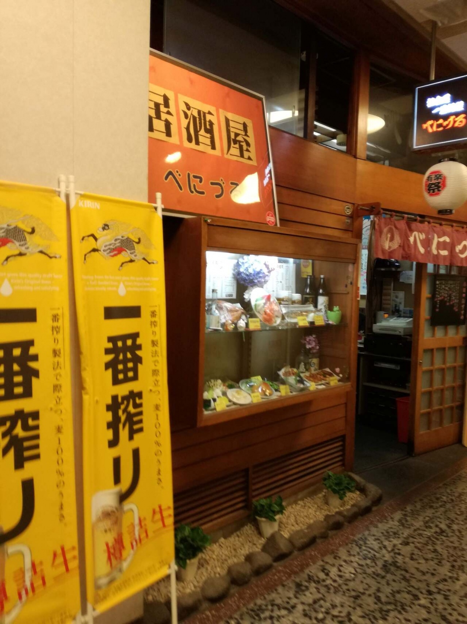 有楽町駅前の東京交通会館(地下1階)にある居酒屋です。かなり古いお店で、店内は昭和の雰囲気が漂った感じです。比較的早い時間でしたが、既に混雑していました。焼き魚(ホッケ)、枝豆、焼き鳥などをおつまみにして飲むことができます。仕事帰りに気軽に立ち寄って飲むにはちょうど良いお店です。