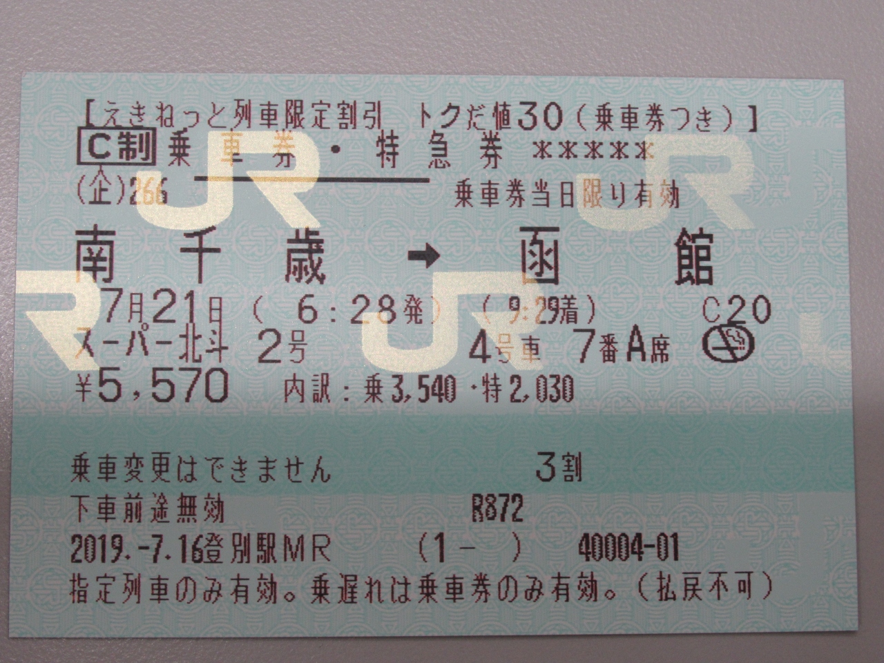 車窓は、海側の方が景色が良いので、札幌から函館へ向かう場合は、A,B席ではなく、C,D席の指定が良いでしょう。