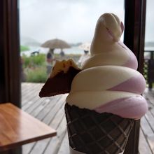 私が食べたのは、ラベンダーをイメージしたブルーベリーミックスソフトクリーム。