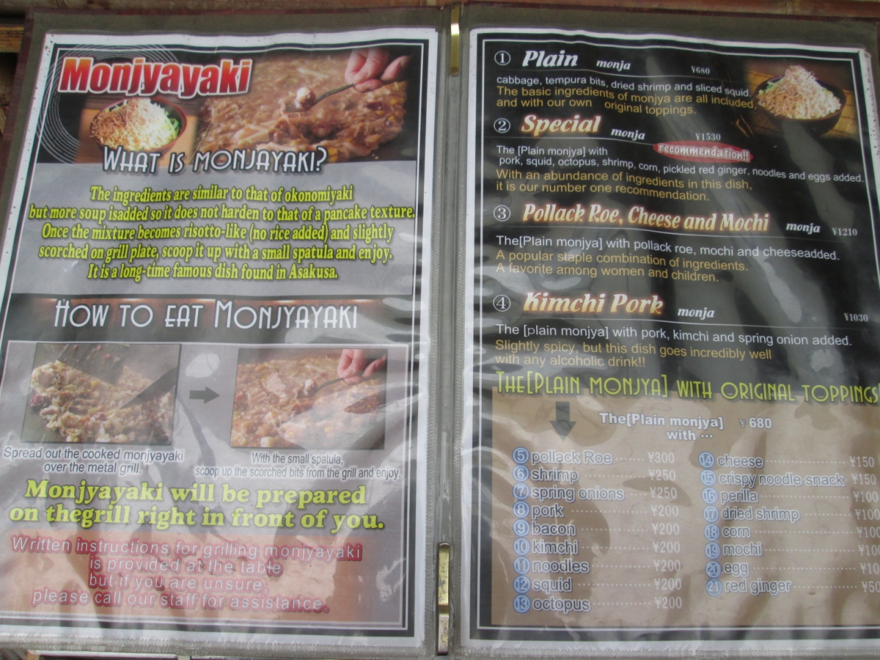 落ちついて感じの”お好み焼き・もんじゃ焼き”のお店です。外人さんも来店されていて、英語のメニューもありました。今回は、”スペシャルもんじゃ焼き”を頂きました。