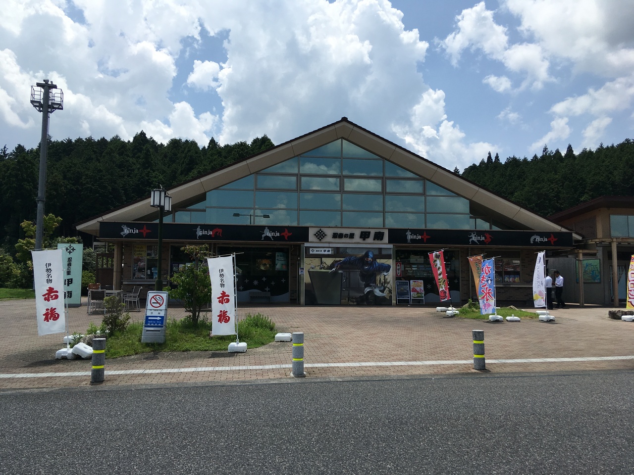 滋賀県の新名神高速道路にある甲南パーキングエリア。今回は下り線を利用したのですが、入り口に忍者のトリックアートがあって、面白い写真が撮れました。