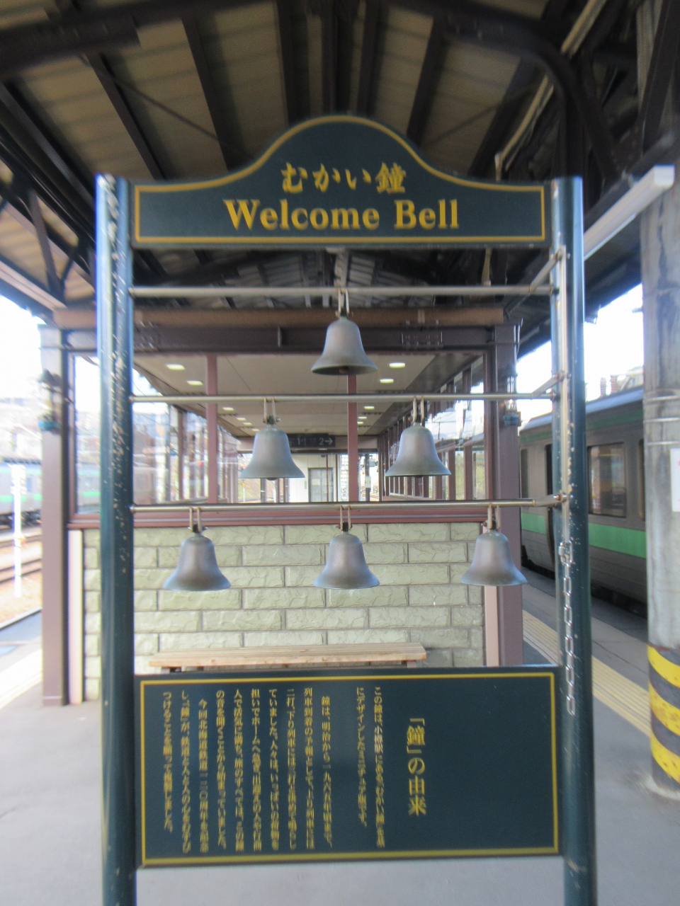 ホームにむかい鐘(Welcome Bell)が設置されていて鳴らしました、
