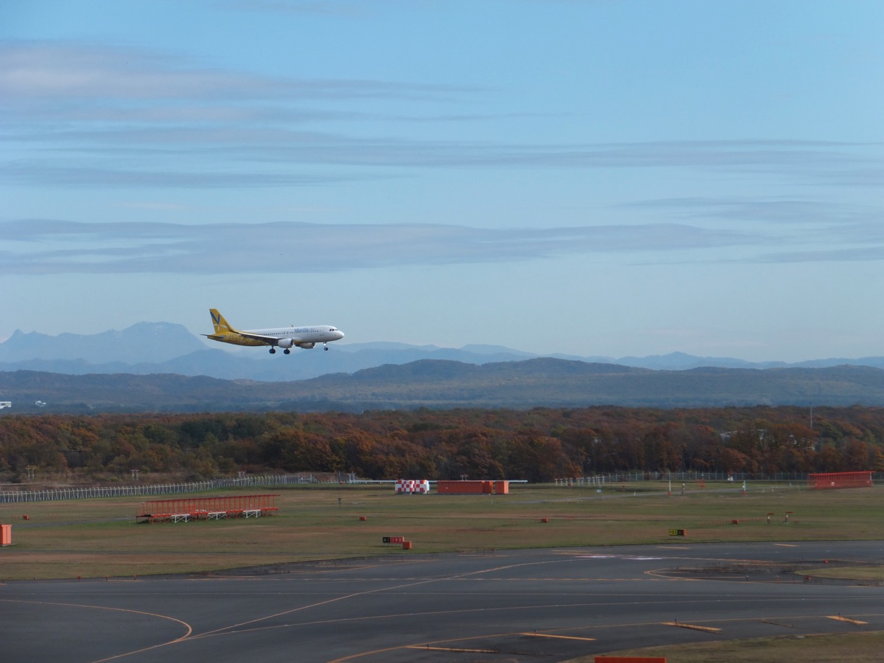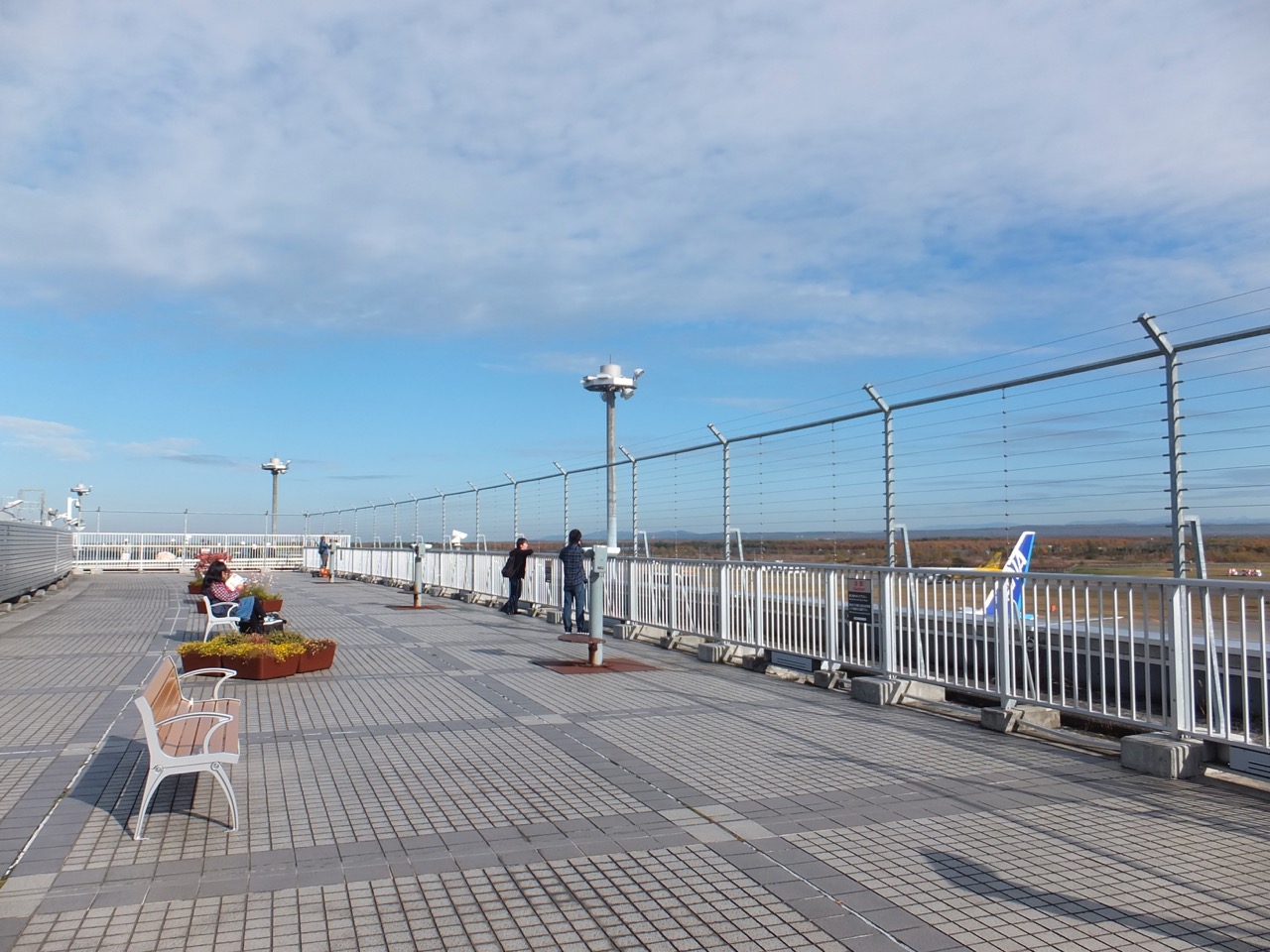 原野のなかにある空港を実感できます。まわり中原生林といった感じ。2本しかない滑走路の離発着はひっきりなし。東京や大阪への大型機に混じり、近距離のプロペラ機もときどき。見てて飽きません。訪問時は雁も列となって飛行中。季節が実感できました。