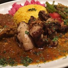 日替わりのカレーを提供してくれます。何種類かあるので、相がけを選びました。どちらもスパイスが効いたカレーでおいしかったです。またカレーに合わせた様々なビールも楽しめます。