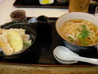 店内はほぼ席が埋まり外国人もいて英語のメニューで注文していて、すぐに天丼うどんセットが出来上がり、天丼は汁が別になっていて、薄い色の出汁のうどんと合わせていただくと満腹になりました。