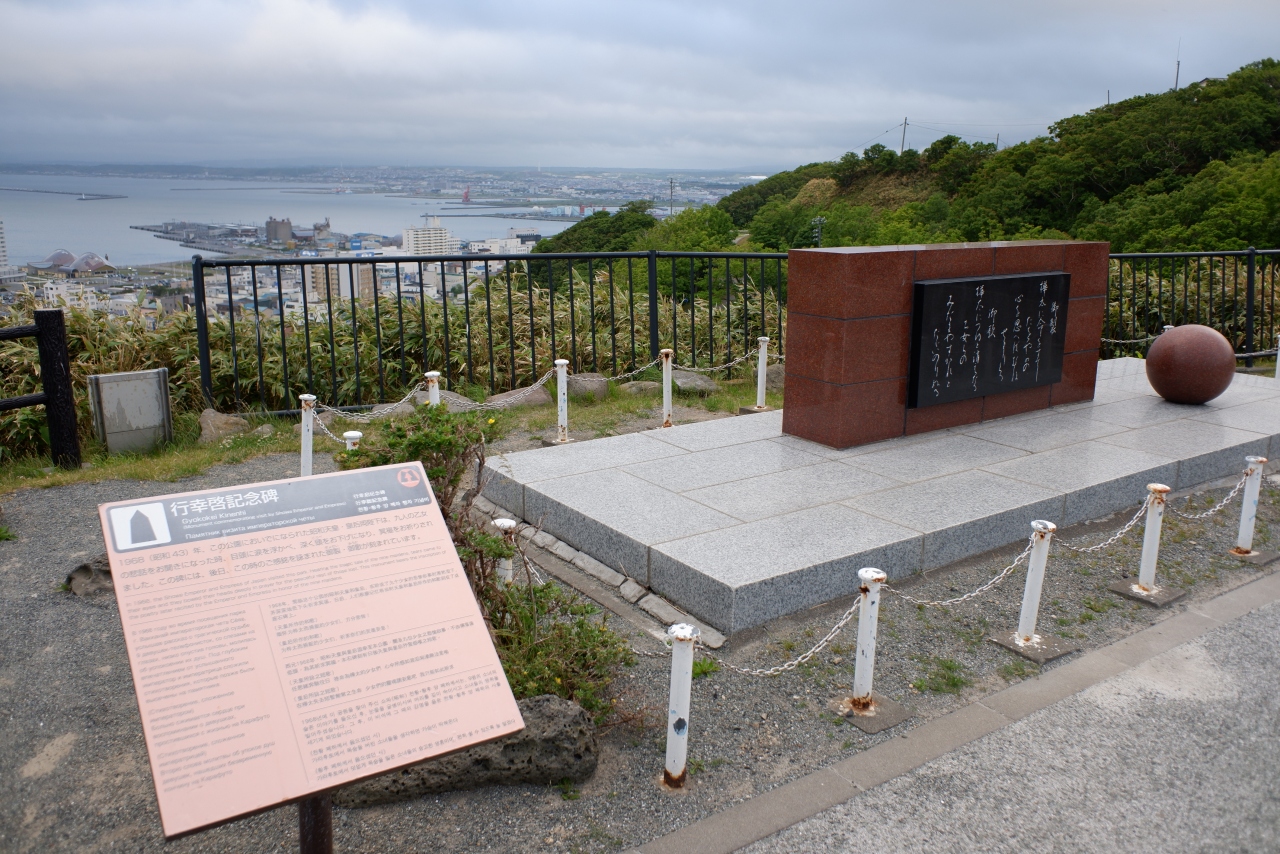 「昭和天皇行幸啓記念碑」は、稚内公園の高台にあります。案内板によると、昭和43年に昭和天皇がこの地を訪れ、九人の乙女の悲劇を知り、後日、その時の気持ちを詠まれた歌という事です。この周囲には数多くの石碑があり、何れもその案内板を読むと、心に深く感じるものがありました。