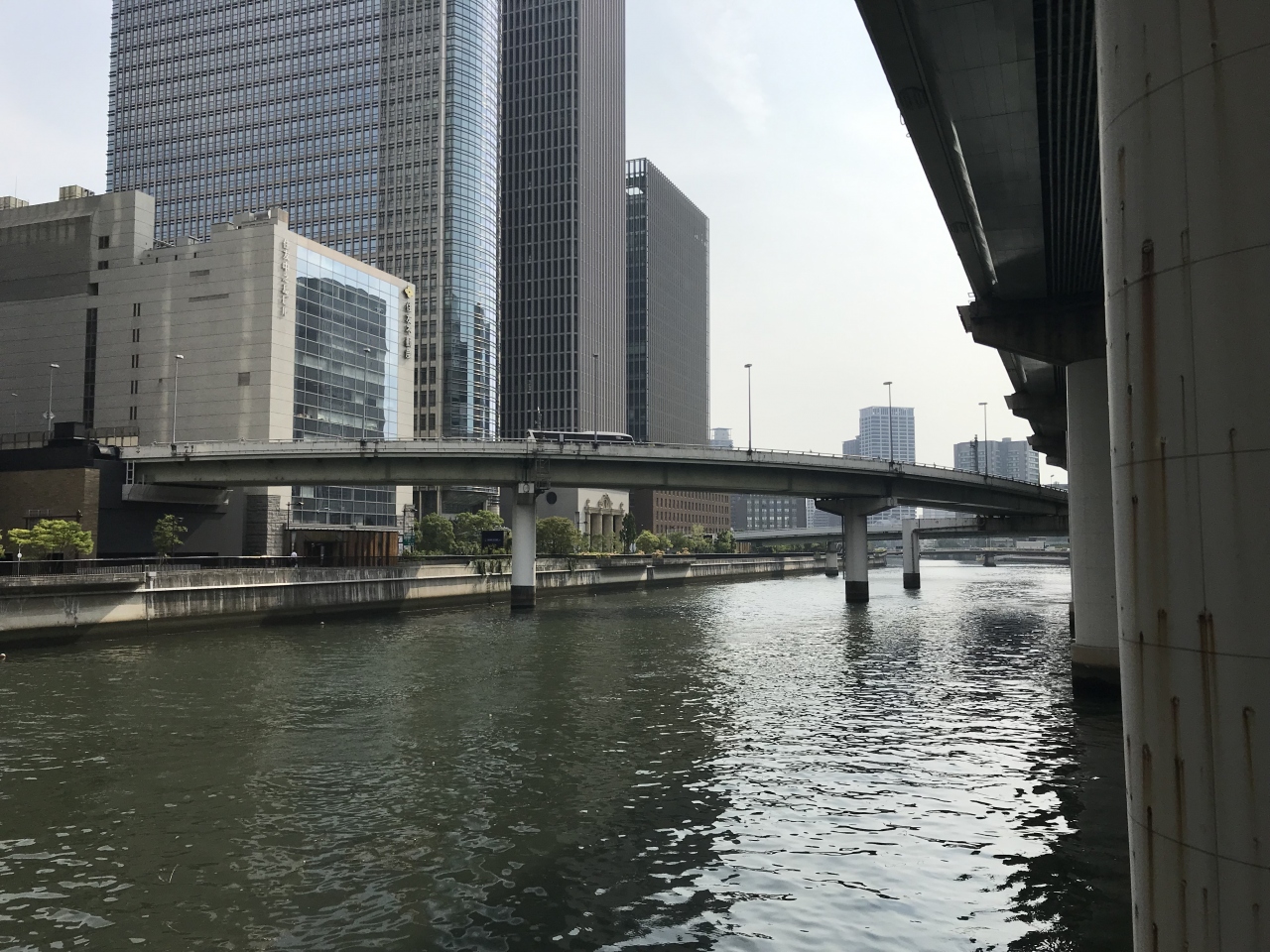 中之島の北側を流れる堂島川。渡辺橋を渡った時や中之島遊歩道をあるった時に堂島川を眺めました。決して綺麗な川ではないけど、大阪の市街地を流れる川で一種の景勝地になっています。堂島川の周りは高層ビルが並んでいるので都会的な雰囲気。意外と幅の広い川です。
