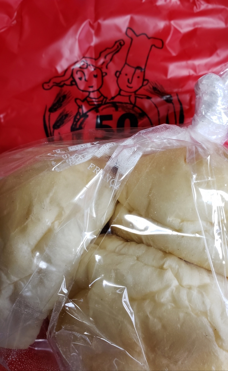結局はいつも食べなれている白パンの詰め合わせを買いました(写真は食べかけw)