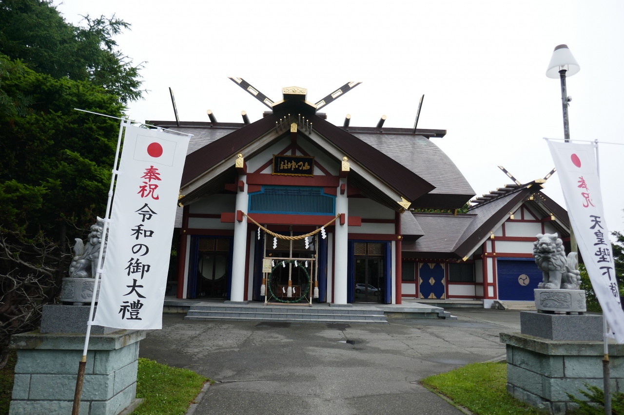 宿泊ホテルで朝食をとったあと、近隣の散策中に立ち寄りました。稚内公園に隣接しており、市街からは近いですが、社殿は長い石段を登ったところにあります。東京や京都ではあまり見かけない、屋根の形、色彩豊かな社殿は印象的でした。特に青色が使われていたのが記憶に残っています。最北端の神社ということです。