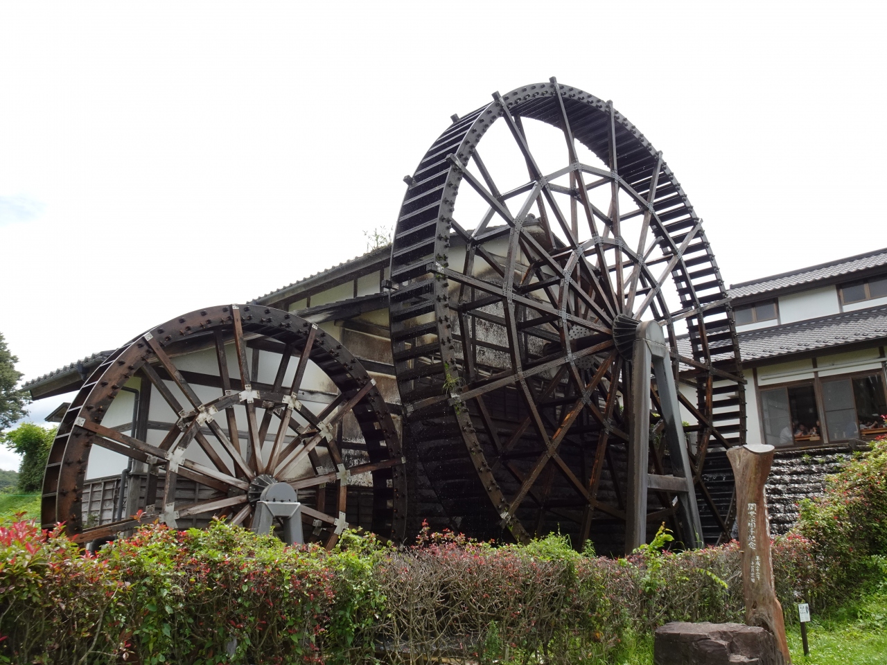この道の駅の人気は蕎麦。巨大な水車が石臼でそば粉を挽いて作っているとのことで、蕎麦処には行列ができていました。2台ある水車の大きい方は直径が12メートルもあり、近くで見るとなかなかの迫力です。