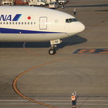航空機の離発着はもちろん、航空機への貨物積み下ろしや牽引車を運転している係員の様子も見ることができます。機体が牽引車に押し出されて下がっている時に見ているとかなりの確率でパイロットがデッキの方にいる私たちに手を振ってくれているので思わず振り返してしまいます。中央のターミナルを挟んで両側にあるので広々としておりおんびりと過ごすことができました。