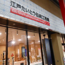 江戸下町伝統工芸館、とマップなどにありますが、もらったパンフレットや建物などには、「江戸たいとう伝統工芸館」となっていました。花やしき近くの、アーケードのある、ひさご通りにあります。無料です。2階建てです。2階では、本物の工芸作者が実演していました。1階、2階とも、伝統工芸の作品が展示されており、素晴らしい作品が多数ありました。