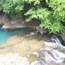 駐車場から徒歩数分で川沿いの階段を下って行くと到着します。