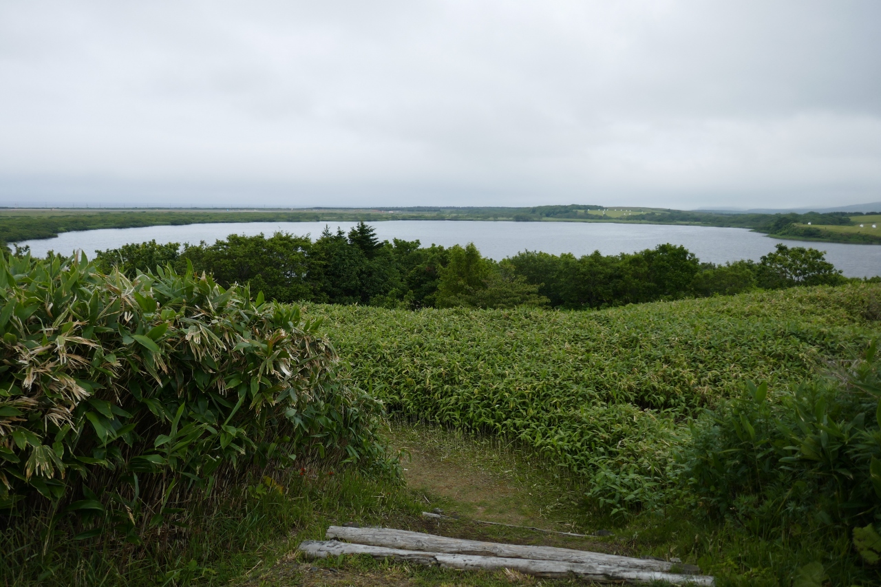 「メグマ沼」は、稚内空港のすぐ近くにあります。同じく空港近くにある「大沼」と比べると、大きさは10分の1ほどの小さな沼です。訪れた6月の終わりは、周囲を鮮やかな緑に囲まれてとても美しく感じられました。雲が立ち込め、日照が全くなかったのが悔やまれます。