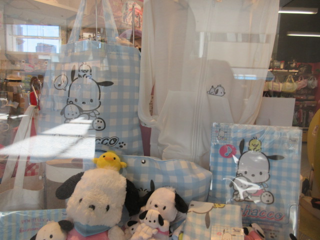 横浜のみなとみらのクイーンズスクエア内のお店です。このお店は子供用の商品だけでなく、大人用の商品も充実しているので気に入っています。バッグなども使える感じの商品が多いです。今回特集されていたのは「ポチャッコ」という犬のキャラクターでした。ちょっと懐かしい感じのキャラクターですが、よく見るとふわふわでかわいいかも!