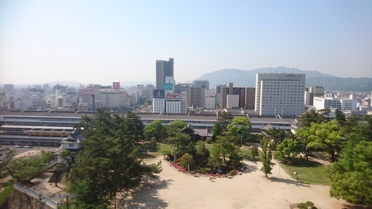 福山市に旅行したときに、福山城に行きました。福山城はJR福山駅のすぐ北側にあるので、アクセスは非常に良いです。館内は撮影禁止ですが、最上階の5階にある展望台は撮影可能で、そこからは福山市街地やJR福山駅などを一望することができました。