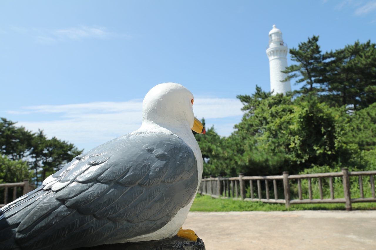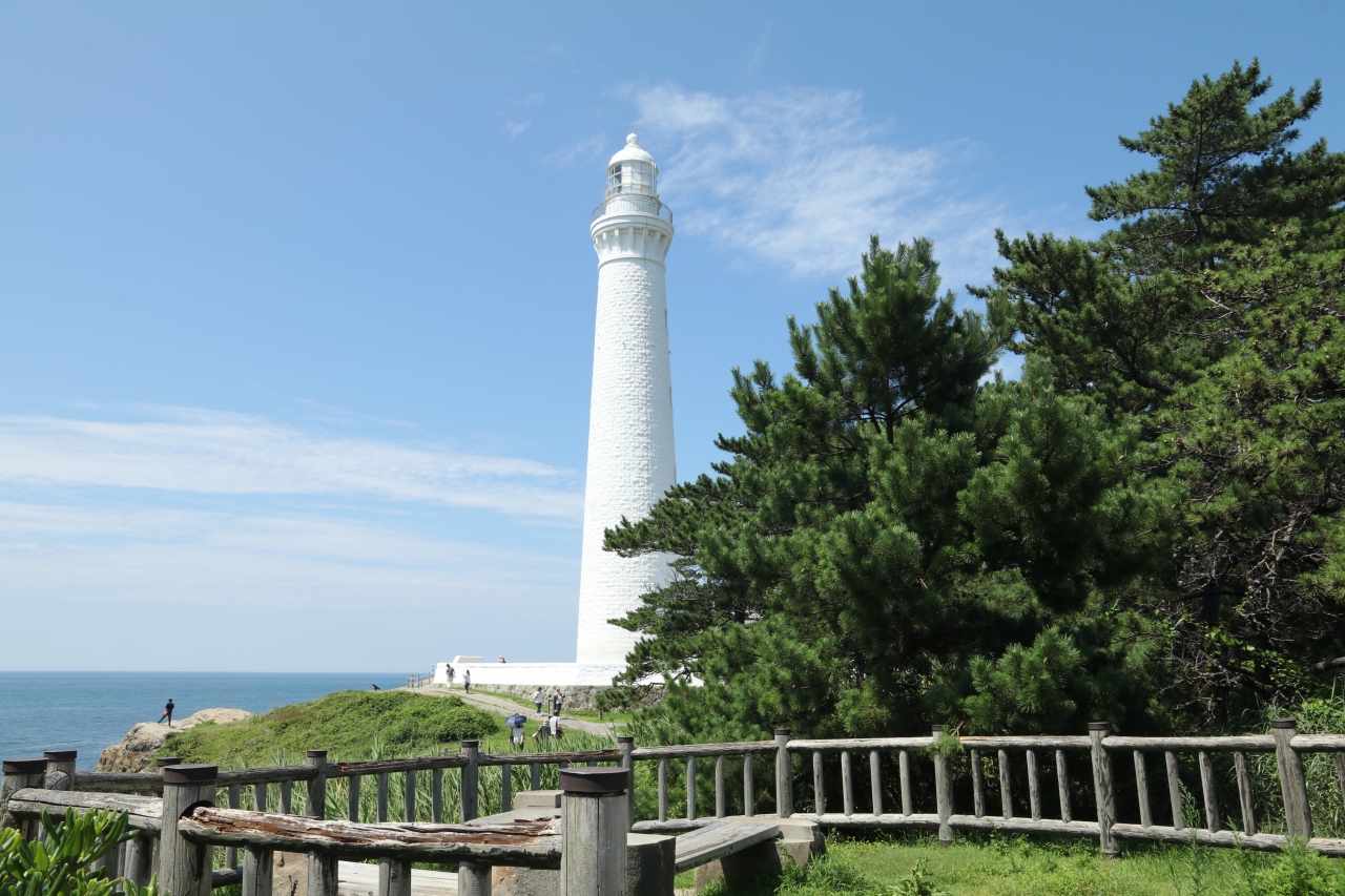 真っ白い灯台の姿も青い日本海もバックに美しく、来た甲斐はあったと思いました。