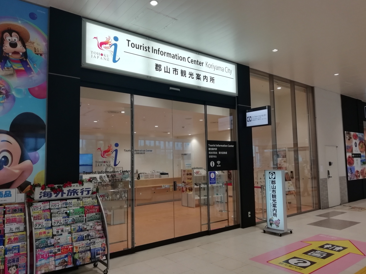 JR郡山駅の新幹線改札口から真っ直ぐ歩いて行くと左手、みどりの窓口隣にあります。中は広々していて、観光案内やホテルパンフレットなども置かれています。郡山周辺の情報はもちろん、福島県内の他の地域のパンフレットもあるので、是非、立ち寄って見てくださいオススメです。