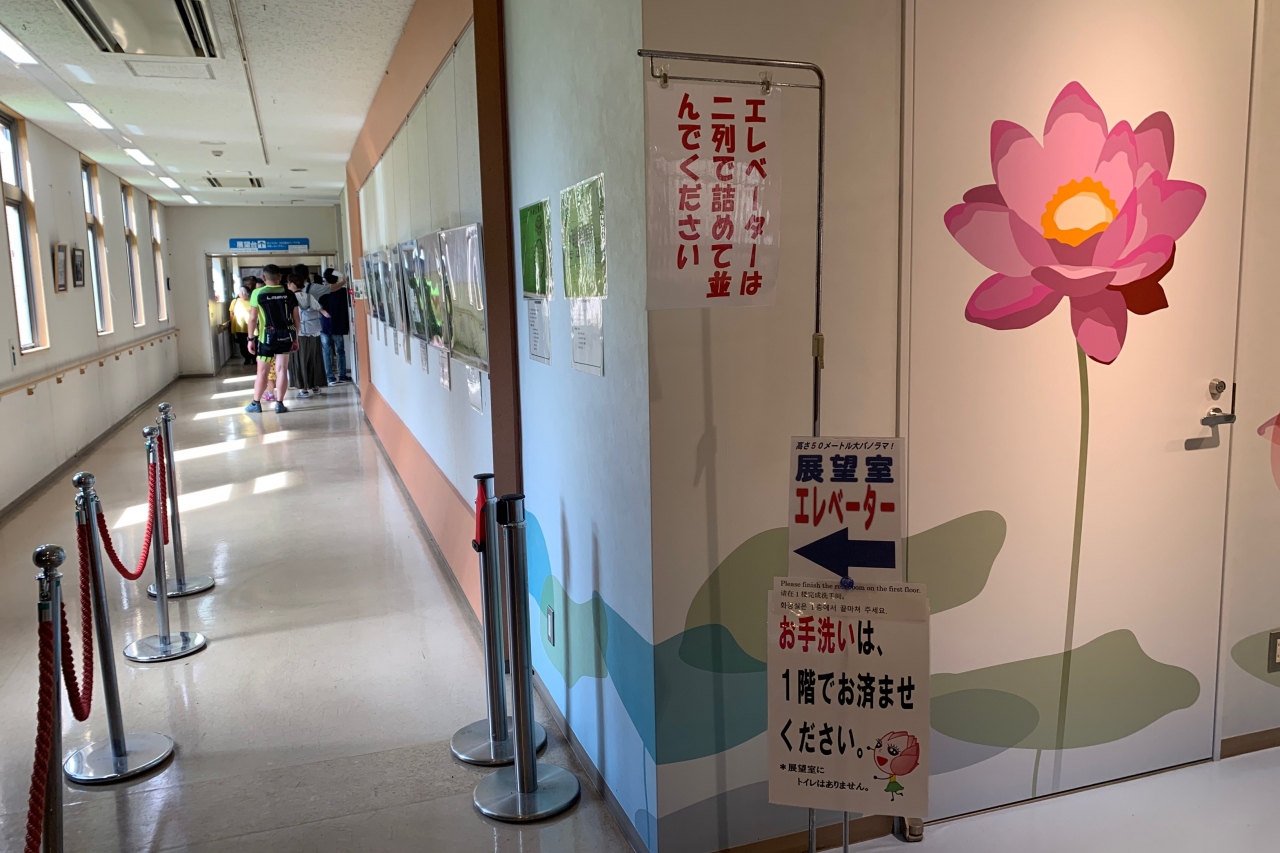 駐車場が満車になるような混雑具合ではありませんでしたが、バスツアー客が来ると、定員11名の展望台のエレベーターは混雑し、順番待ちも列が長くなります。