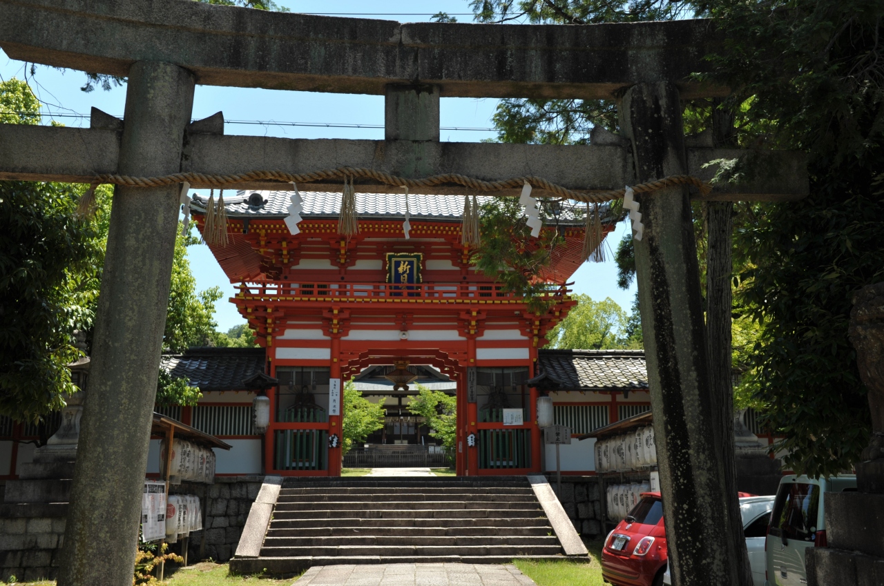 いずれも「ひえ」と読む日吉、日枝、比叡は同義だという。この神社は後白河法皇が院の御所を法住寺(三十三間堂横)に構えた際、鬼門を守る神社として比叡山から神様を勧請して創建したという。その後、菅原道真や豊臣秀吉、さらには火の用心の愛宕神までさまざまな神様が合祀されている。境内にはこうした摂社が数多く構えられ、御朱印も数種類ある。朱塗りの楼門が印象的だ。京都女子大学に向かう「女坂」の沿道にある。