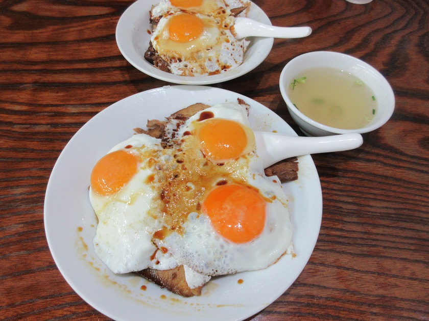 今治市内にある中華料理の重松飯店。ちょうど昼時に来店したけどスムーズに席に案内されました。焼豚玉子飯の中盛りをオーダー、目玉焼きが3つも入っておりボリューム満点!お店の焼豚玉子飯のタレもお土産用に売っています。