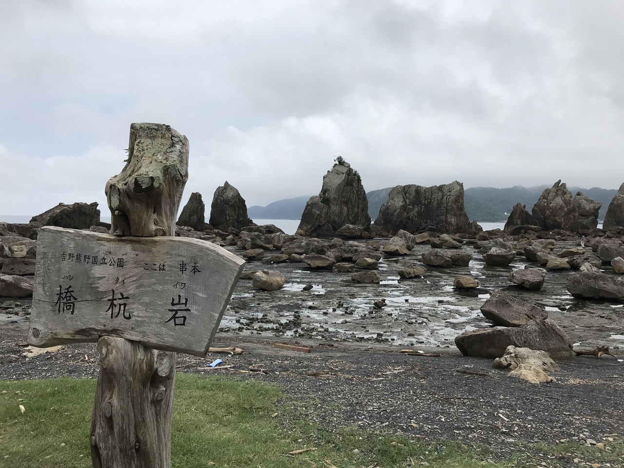 道の駅くしもと橋杭岩は、名前に全く偽りが無く、眼前に広がる風景は海岸で橋杭岩だ。