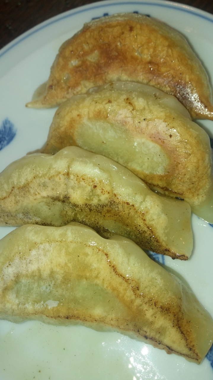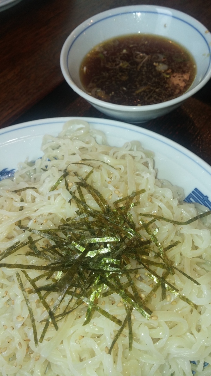 評判の揚げワンタン、餃子、冷やしつけ麺、ラーメン、ハイボールを注文。