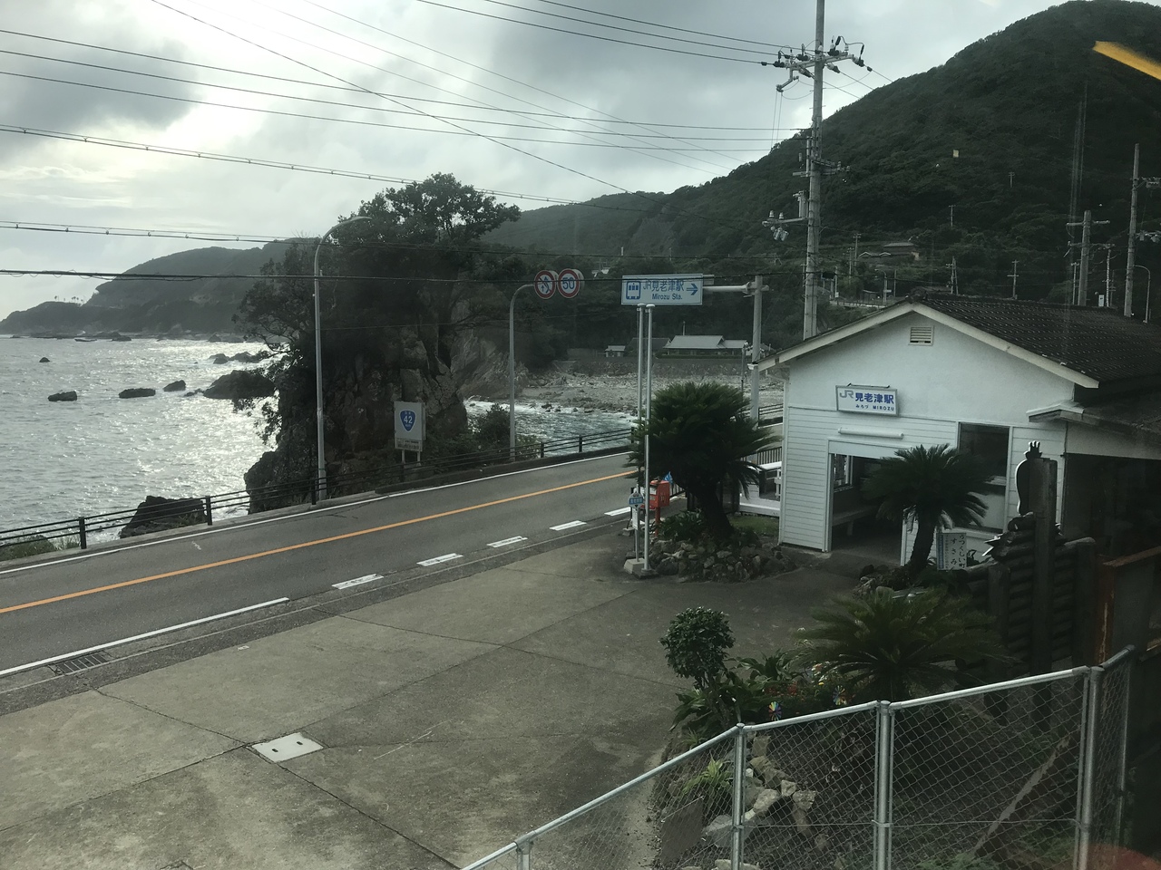 海岸沿いの国道42号線と並行して駅舎があり、目の前が海である駅舎や国道より高台にあるホームからは枯木灘海岸の風景を眺められる。また、この付近を走行中は綺麗な枯木灘の海岸風景を楽しめる。駅舎には浸食された岩があり趣きを感じる。