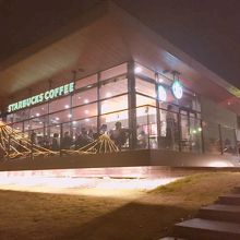 富山県の環水公園の中にある、日本一綺麗なスタバと呼ばれているスターバックスです。夜カフェで利用しましたが、ライトアップされていてとても綺麗でした。真ん前には大きな池があり、ちょうどクリスマスシーズンだったため、大きなクリスマスツリーがとても綺麗でうっとりしました。夜でもけっこう混んでいました。