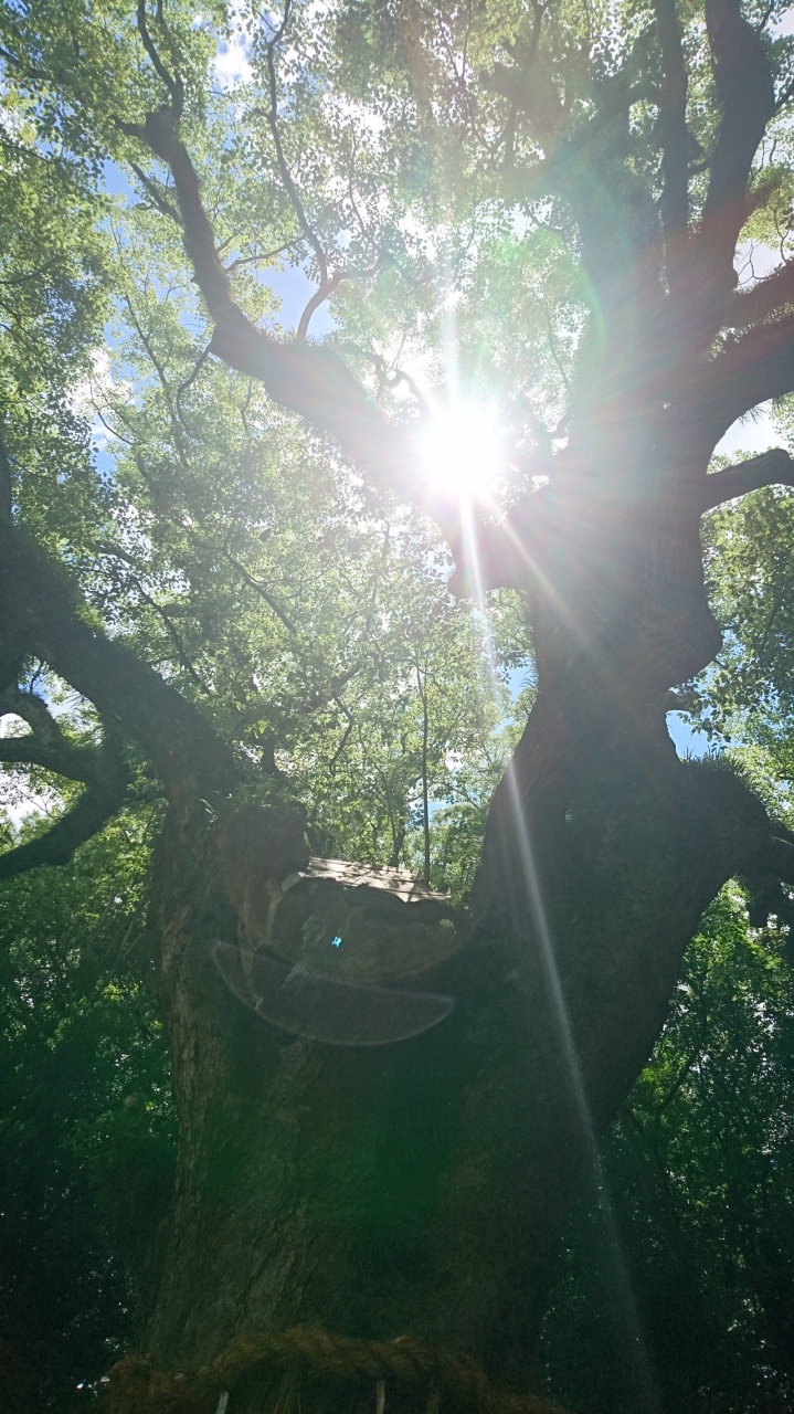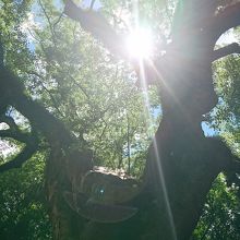戦争中に空襲の被害を受けましたが、こちらの大楠は元気に育っています。