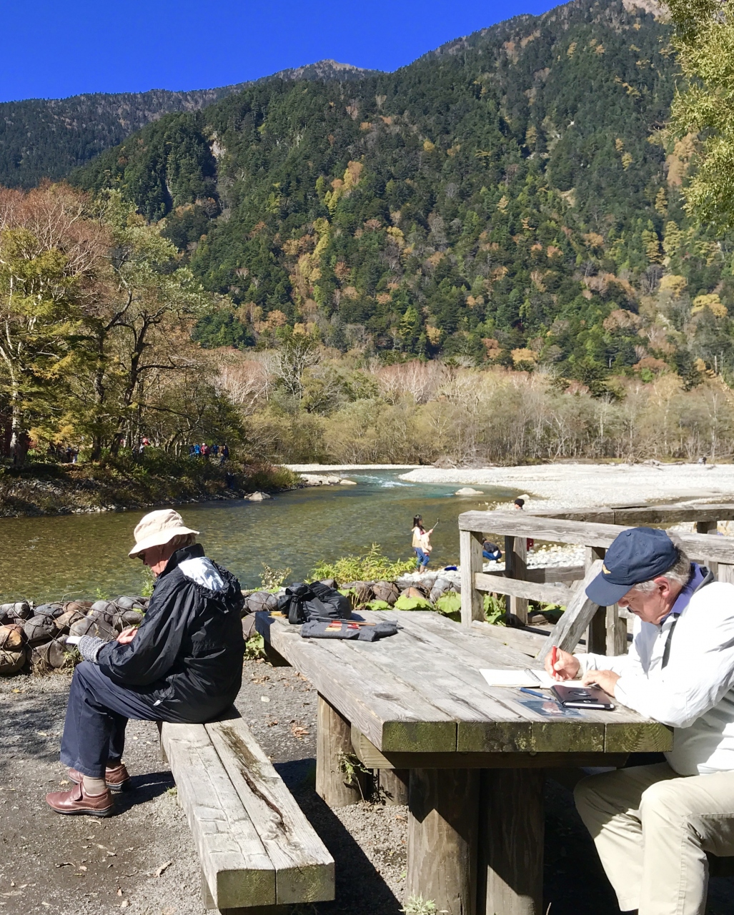 自然林と梓川の清流そして穂高連峰。