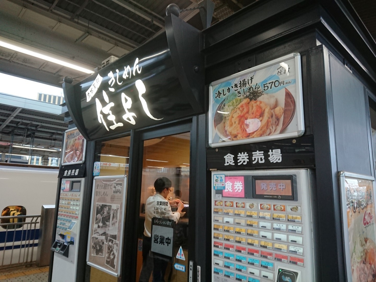 新大阪駅から自由席で名古屋駅に向かうと、ホームに降りてすぐのところにあります。朝6時すぎから既に御客は入っていますが回転が速いので問題なく食べれます。きしめんの味は美味しく、名古屋駅での朝ごはんに最適です。