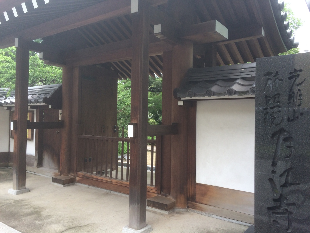 山門は木が目立ち、木が屋根を支えているような感じに見えました。境内は小道が伸びていて途中で曲がっていました。草が前方、後方に木が生え綺麗に整備されていました。狭い境内で中に入ることは出来ず、観光寺院でもないのでひっそりとしていました。