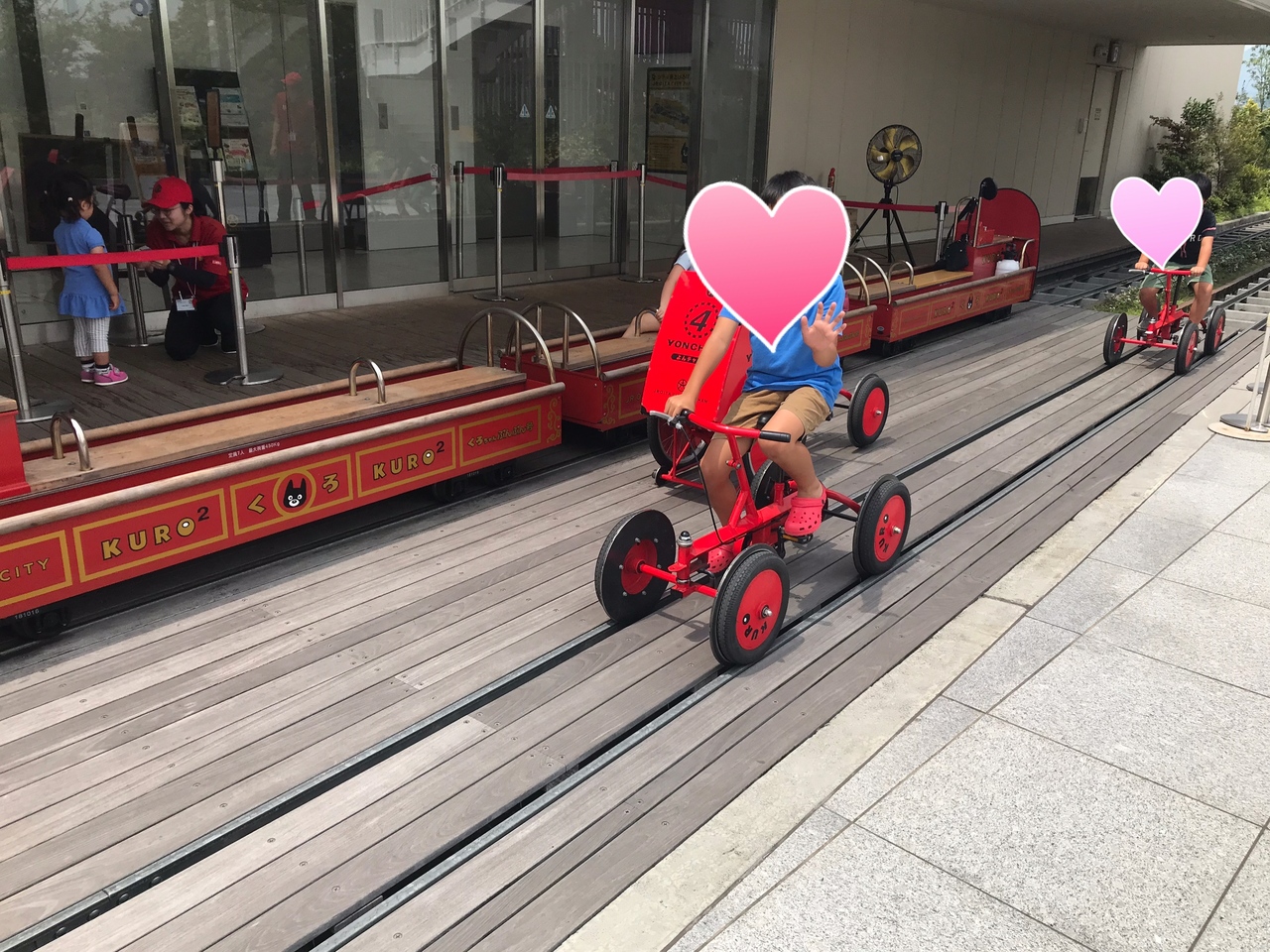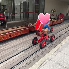 アミュプラザ大分の屋上には、子どもが遊べたり、大分が見渡せる展望台のようなところがあります。レールの上を走れる自転車は100円、電車は300円で利用できます。奥には駄菓子屋もあるので子どもとすごすにはとてもいいですが、夏は暑いです。