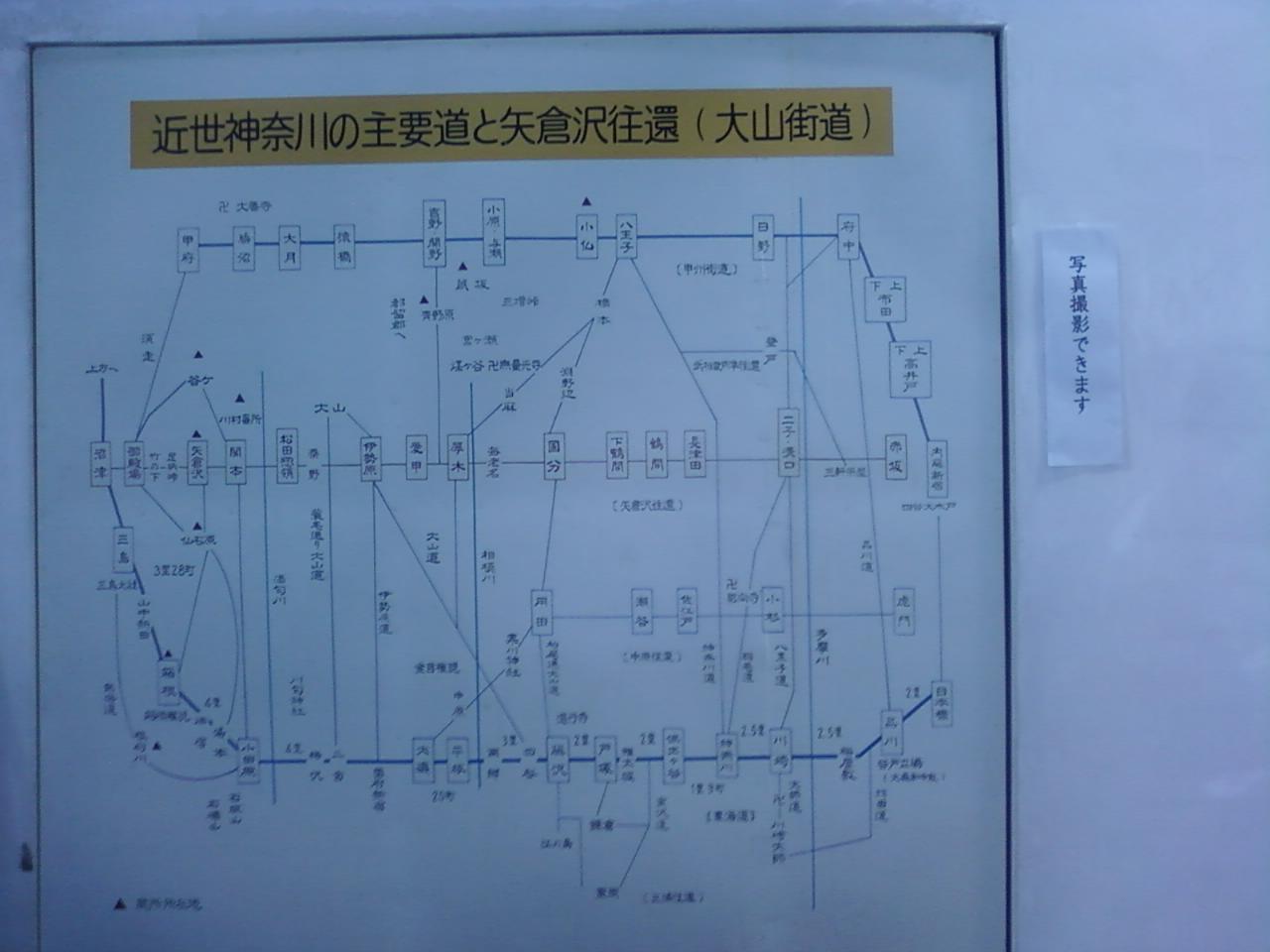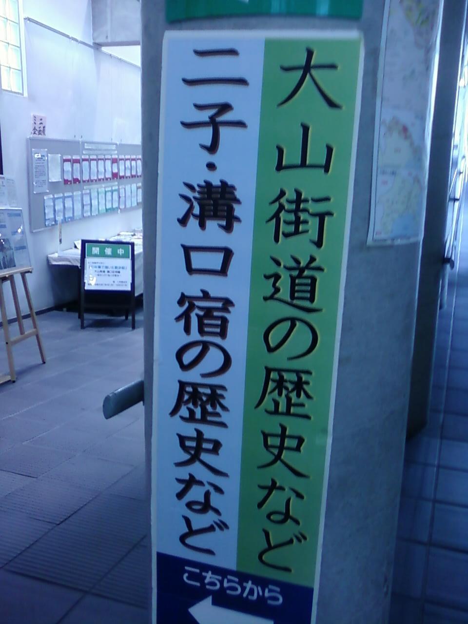 大山街道ふるさと館は、JR武蔵溝ノ口および東急線溝の口駅から5分くらいのところにあります。無料で訪れることのできる、また館内は写真撮影も可能という非常にオープンな場所です。大山街道とその沿線の様子がわかりやすく展示、説明されています。赤坂御門から始まって、大山の阿夫利神社を通って沼津まで行く大山街道。ほぼ246号をなぞるような形ですが、現在でも馴染み深い二子、長津田や溝の口の様子など、今と昔の変遷がよくわかって興味深いです。