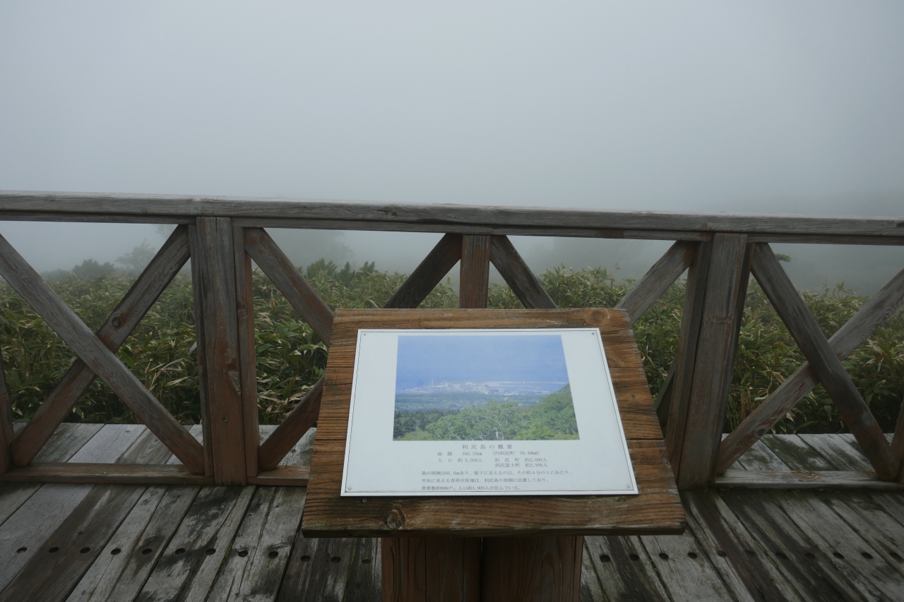 朝から利尻山にかかっていた雲が途切れ、頂が見えたので、ダメもとで「見返台園地」まで車を走らせました。結果は視界が数メートルしかない状態でした。展望台のある利尻山の中腹に雲がかかっている状態でした。展望台に至る道は、途中からは狭くなり、天気が良ければ大型の観光バスも通ることから、運転に自信のない方は避けた方が良いかもしれません。