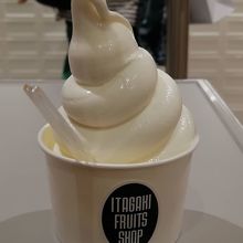 サンドイッチやパフェやデザート、フルーツジュースなどのメニューがありますが、今回はソフトクリーム(400円)をいただきました。