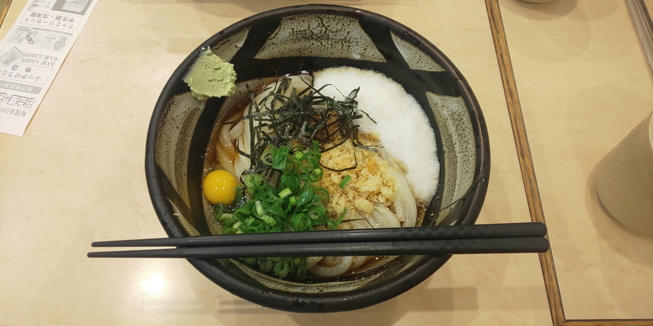 うどんはこしがあり、かかっている出汁は少し味が濃かったですが、とろろで薄まって、ちょうどよい具合になりました。