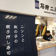石狩の厚田地区にできた新しい道の駅の2階にあるお店です。ここの名物は、「ニシンのバッテラ」です。昔、石狩市はニシンで栄えた地域、今も鰊番屋が残っています。その特産品を生かしたグルメがこれです。ニシンが上にのったバッテラで、ご飯の中には数の子が入ったぜいたくな一品です。ご飯の味としめたニシンがとってもマッチしています。数の子の食感もよく、とてもおいしい新名物です。他にも、安いマグロ丼などもあり、お買い得です。
