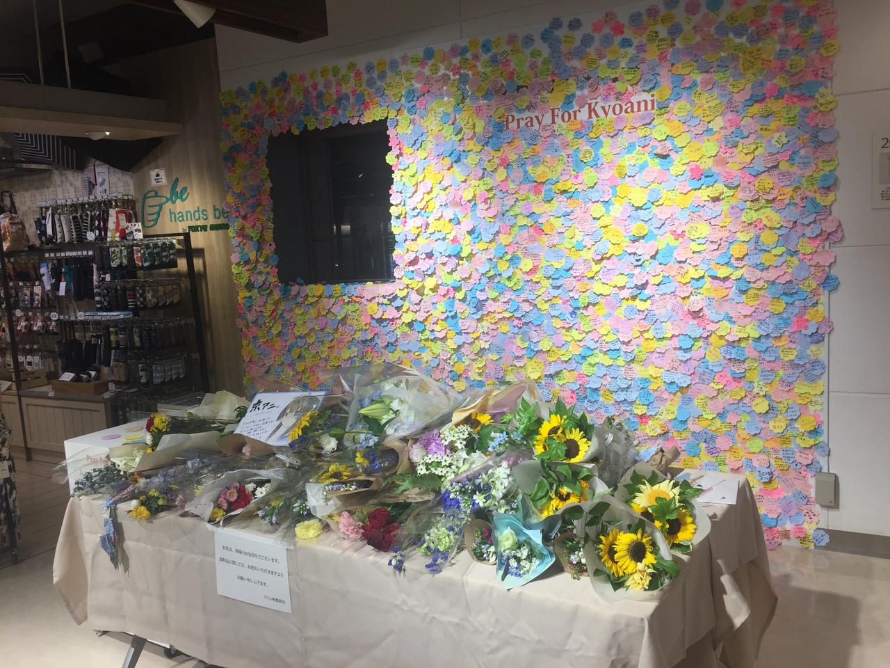 そして 2F 下りエスカレーター前のエリアに 京アニ pray 特設コーナーが設置されていた。