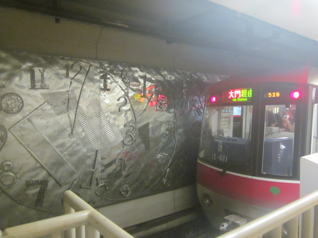 ただ、田舎者的視点からは、人混みの多さにはやはりそうとう疲労してしまいますね。大体にして、時間的な人の流れとか、全然把握できていない状況でしたので、空いている時間帯を見越して乗車したにも拘わらず、ギューギュー詰めの車内とか、やはりハードルの高い街だなと思いました。まあ、大江戸線自体は全体として新しい印象で、乗客を飲み込んだ後のホームとか、束の間の静寂の時間が現れたりしますので、疲れた際には、ホームの端の方の椅子があるブースででも休憩しながら、次の乗車に備えて体力回復しながらの沿線観光、というのが、人混みが苦手な方にはお勧めです。