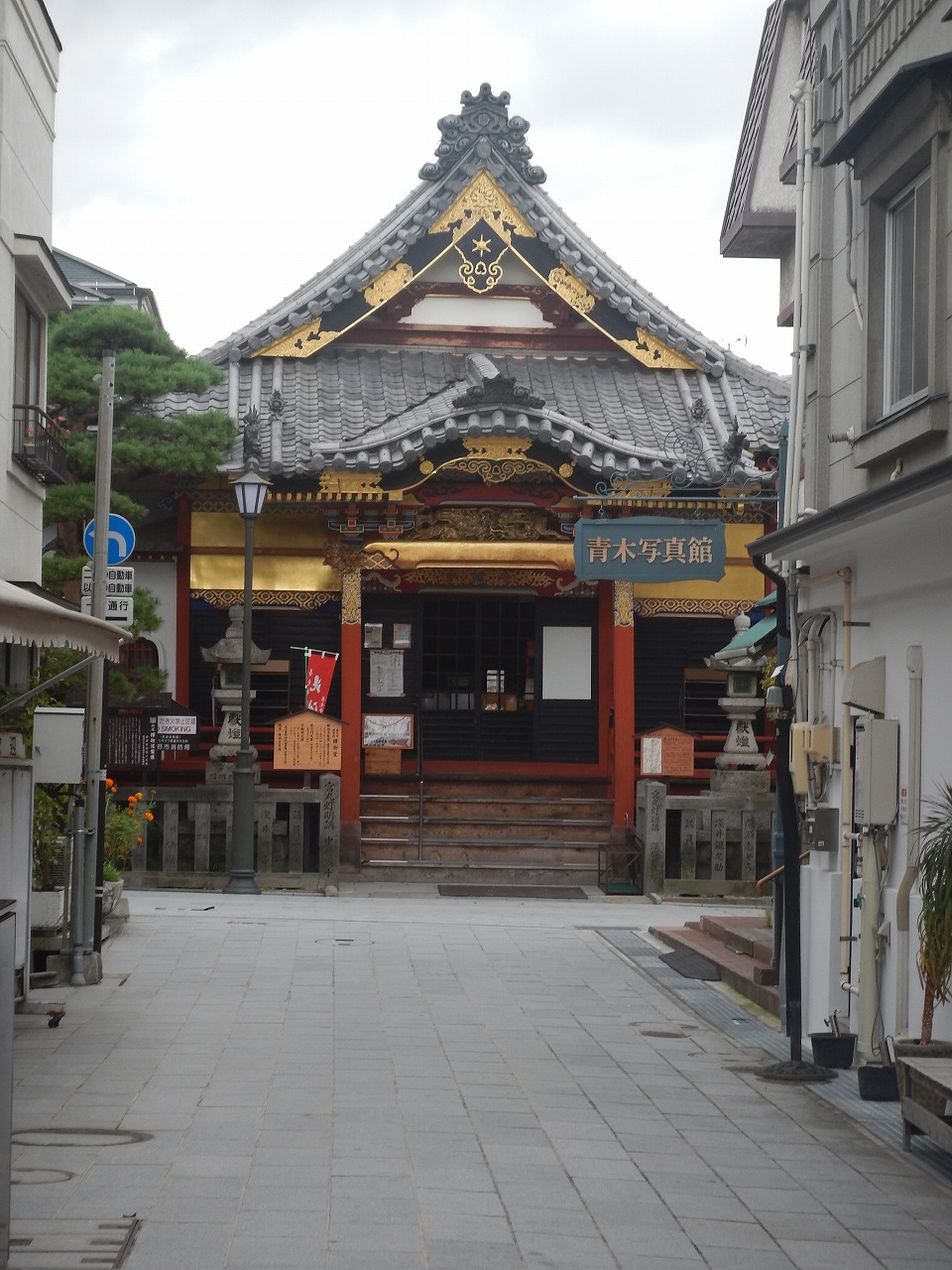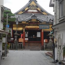 善光寺の仁王門をくぐり、仲見世通りを進んで中ほどを右に入ると、奥に見えるの釈迦堂です。小ぶりながらきらびやかな装飾が目を引きます。