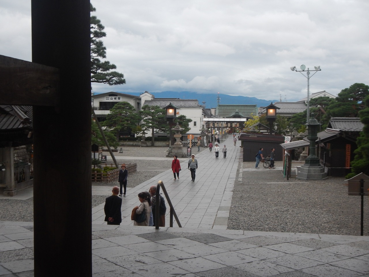 善光寺の境内入口から仁王門に至るまで、仲見世通り、山門から本堂に至るまで碁盤の目のように石畳が敷き詰められています。