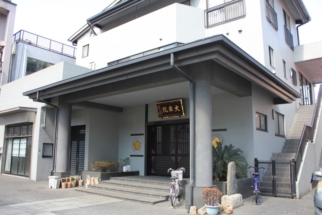 一方通行の道路から路地に入った先にあり、コンクリートの塀に寺名標がありました。