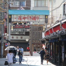 東京メトロ銀座線浅草駅から雷門(風雷神門)をくぐって仲見世通りを進み浅草寺本堂を左に進むと浅草花やしき通り入口に歩いて7分ぐらいで着きます。浅草花やしき通りは浅草寺淡島堂からJRAウインズ浅草のひさご通りで日本最古の浅草花やしき遊園地があります。通り沿いのお土産やグルメ店舗は瓦屋根で統一され江戸下町の雰囲気を味わえます。忍者体験などもできる忍者商店が外国観光客で賑わってました。仲見世通りの賑やかさとは違って落ち着いてゆっくりぶらぶら歩きながらショッピングできますので仲見世の喧騒に疲れたらのんびり食べ歩きをお勧めします。浅草花やしき遊園地から絶叫する声が聞こえ、お店はどこも昭和の雰囲気を味わえます。